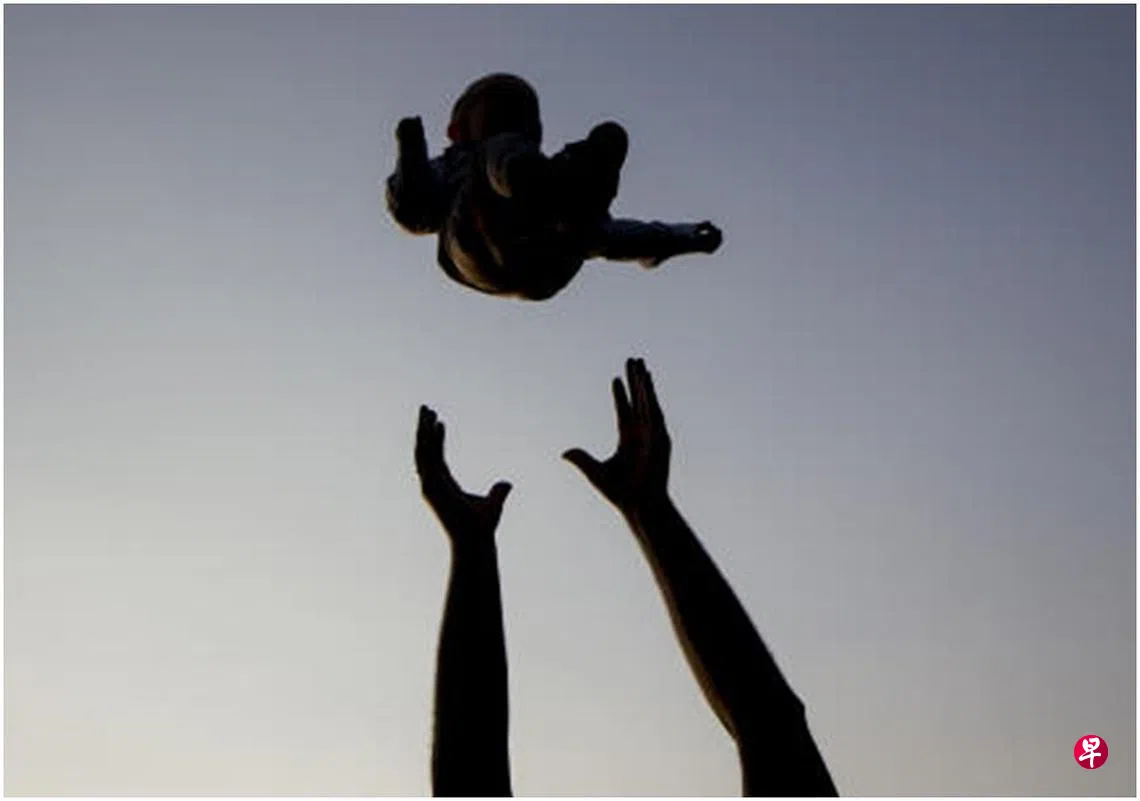 只见被告突然转过身子,双手用力一摆,原本抱在他怀里的小宝宝,瞬间就像橄榄球似的被抛向警员。