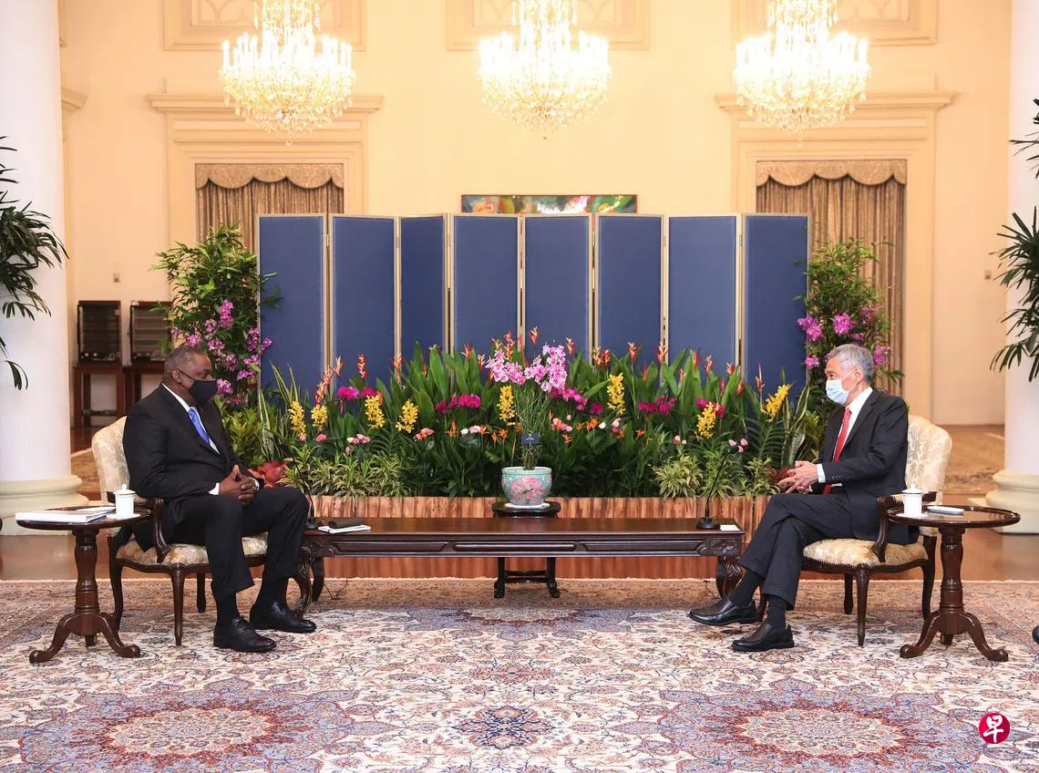 李显龙总理和国防部长黄永宏医生先后会晤到访我国的美国国防部长奥斯汀,并重申新加坡与美国之间牢固的双边及防务关系。