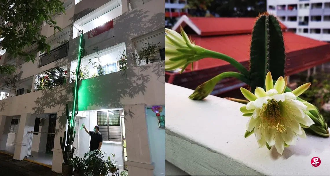 这棵巨型仙人掌出现在循环路(Circuit Road)第61组屋组屋底层单位外,从底层一路往上长,足足长到三层楼,约10米高。