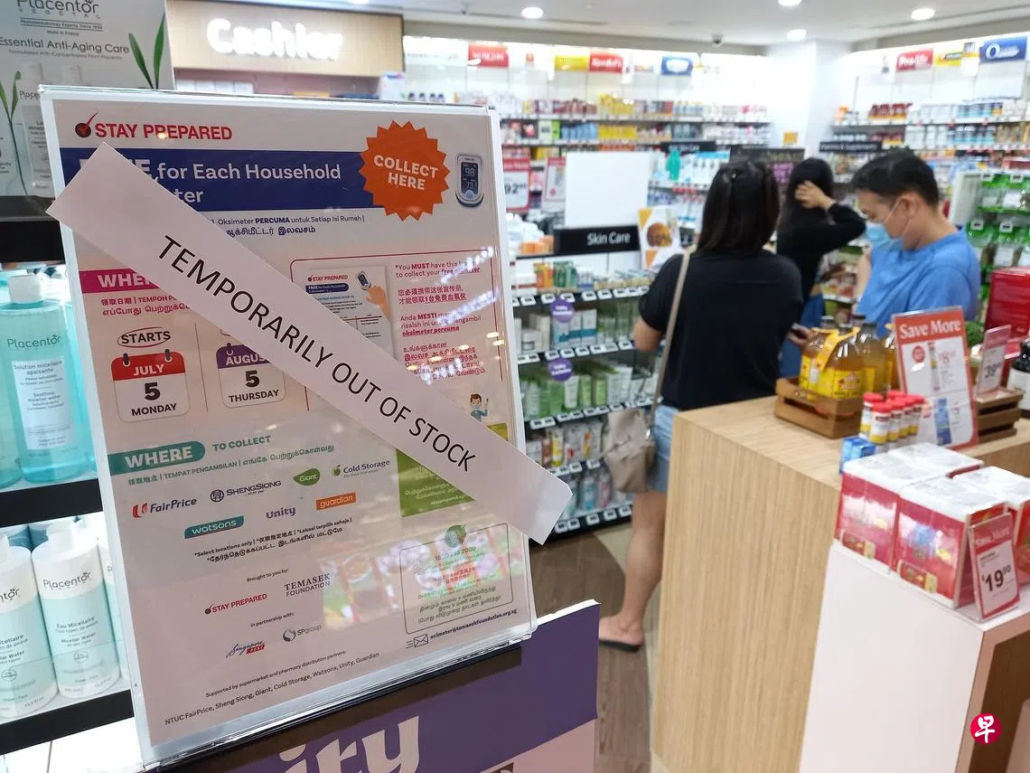 淡马锡基金会从7月5日开始让每一户家庭领取一个免费脉搏血氧仪,以便居民能定期监测自己的健康。活动展开首日,前往领取仪器的人流不断。公众须携带邮寄到住家信箱的传单,到各大参与药房和超市兑换仪器。今天是基金会派发血氧仪的最后一天。