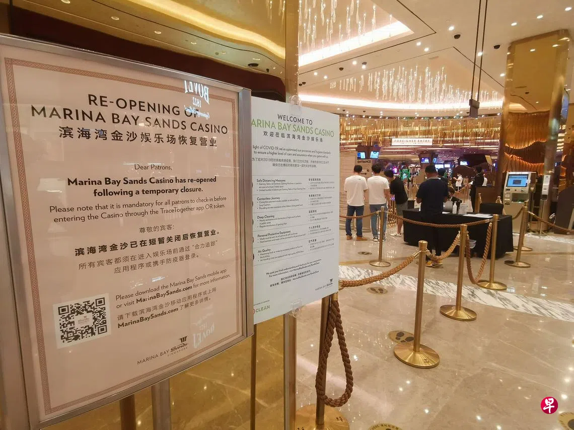 逾九成员工已接种疫苗 滨海湾金沙赌场恢复营运订户赠阅文章滨海湾金沙赌场因出现冠病感染群,上个月22日起关闭两周进行彻底清洗和消毒,昨天恢复营业。赌场入口处放了告示,通知访客赌场采取了哪些措施保护他们的安全。(陈渊庄摄)邓玮婷 报道tengwt@sph.com.sg滨海湾金沙超过九成员工已接种冠病疫苗,赌场关闭两周后昨起恢复运作。滨海湾金沙滨海湾金沙赌场上一篇部分流动接种站无须预约 60岁以下公众可打莫德纳或辉瑞下一篇国大全体师生下周二起 定期做自助抗原快速检测购买此文章