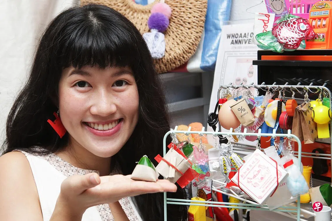 看到梁雯菁设计的饰品,肯定会勾起你的一段回忆。热爱奇趣搞怪耳饰的她,去年开始自制“新加坡风”的饰品。