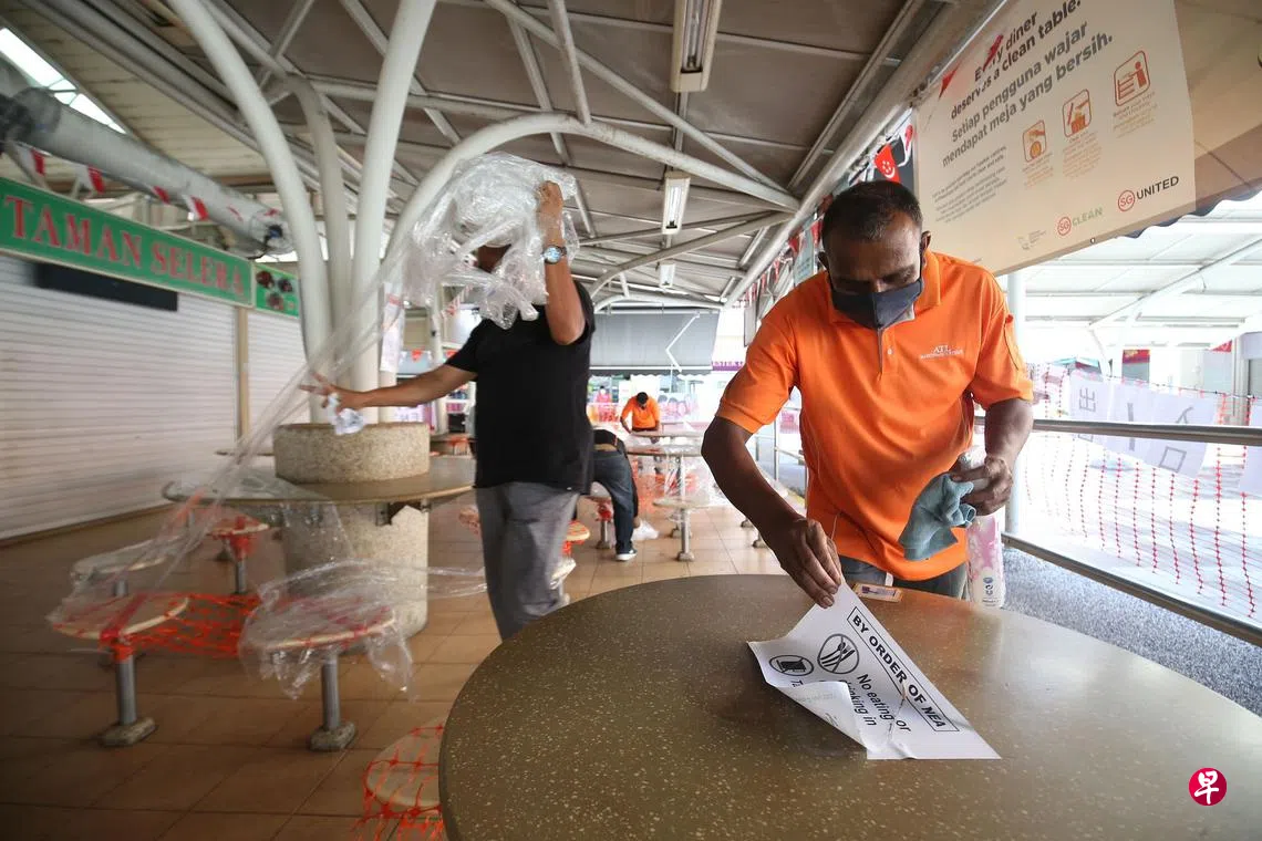 勿洛水池路第630座熟食中心昨天开始为恢复两人堂食做准备。市镇理事会也安排人员进行一轮的清洁工作。