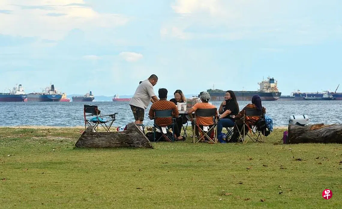 另外,也有一组约七八人的家庭聚会,至少五名成年男女围坐在沙滩上吃东西、聊天,而小孩则在岸边玩水。不愿透露姓名的女子(35岁,经理)受询时坦言,现场有两户来自不同住址的家庭成员。