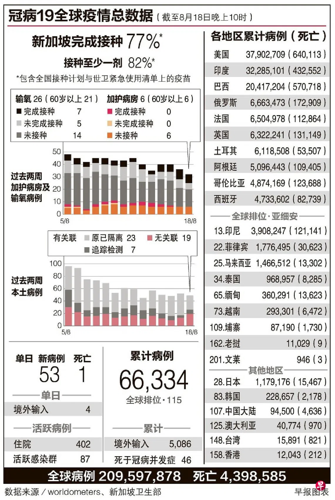卫生部昨天发文告说,截至本月16日,本地人口已有76%完成疫苗接种,82%已接种至少一剂疫苗。当局每天注射的总剂量从高峰期的8万减少到目前约4万。