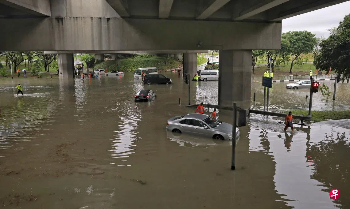 我国全岛昨早下起大雨,多个地区发生突发性淹水。其中,淡滨尼10道和巴西立12通道交界处的淹水情况尤为严重,13辆汽车受困水中央。