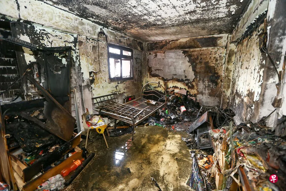 火患地点在红山景第117座组屋的14楼单位。该座组屋共有16楼,失火单位严重烧毁,屋内部分电线暴露在外,走廊也被熏黑,现场一片狼藉。