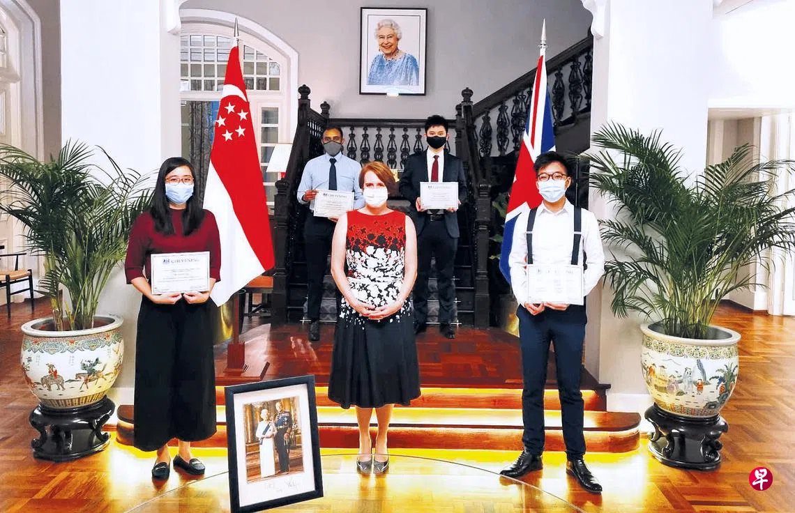 英国驻新加坡最高专员公署颁发2021年度切维宁奖学金(Chevening Scholarship),其中两名医生去年加入抗疫行列,为对抗疫情做出贡献。