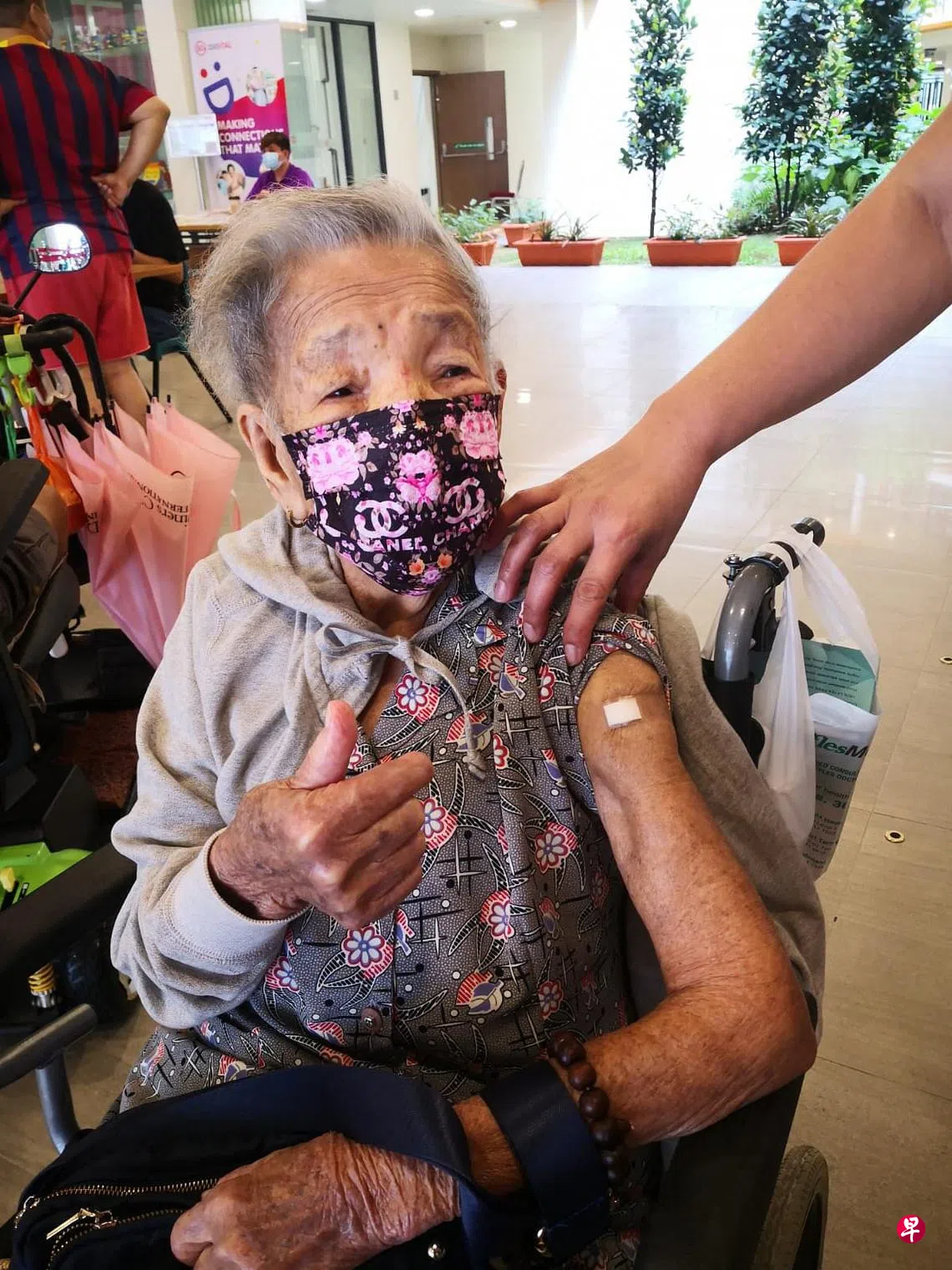 儿子何忠㟍(62岁,德士司机)受访时表示,母亲在8月1日打了第一针。