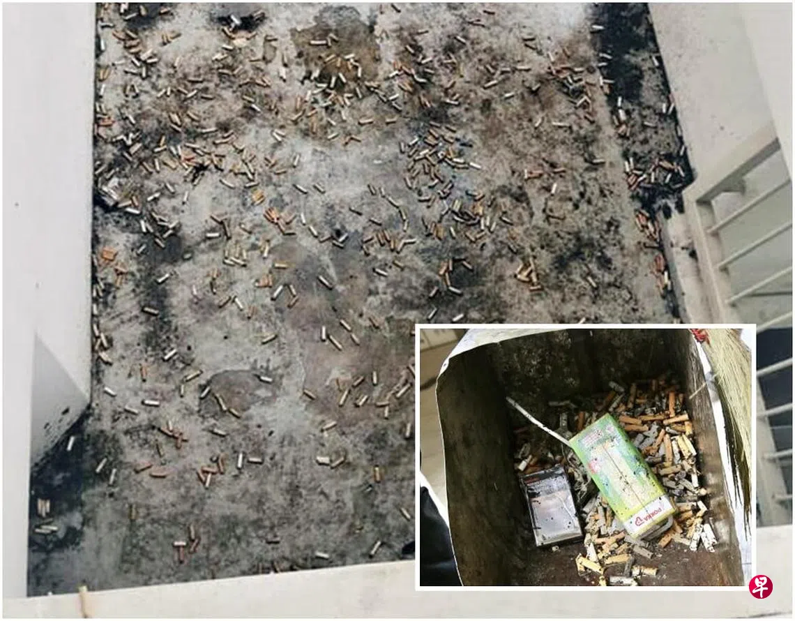 组屋楼上时常有烟客随手把烟蒂往下丢,落在二楼的组屋平台上,一星期内就累积上百根,居民申诉不止弄得脏兮兮,还可能引发火患。