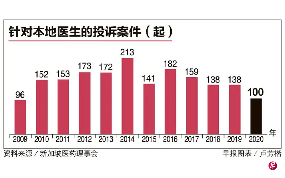 监管本地医生的新加坡医药理事会,去年接获100起针对118名医生的投诉,同比减少27.5%。遭投诉的医生从前年的每1000名医生中有11.6个,跌至去年的7.6个。