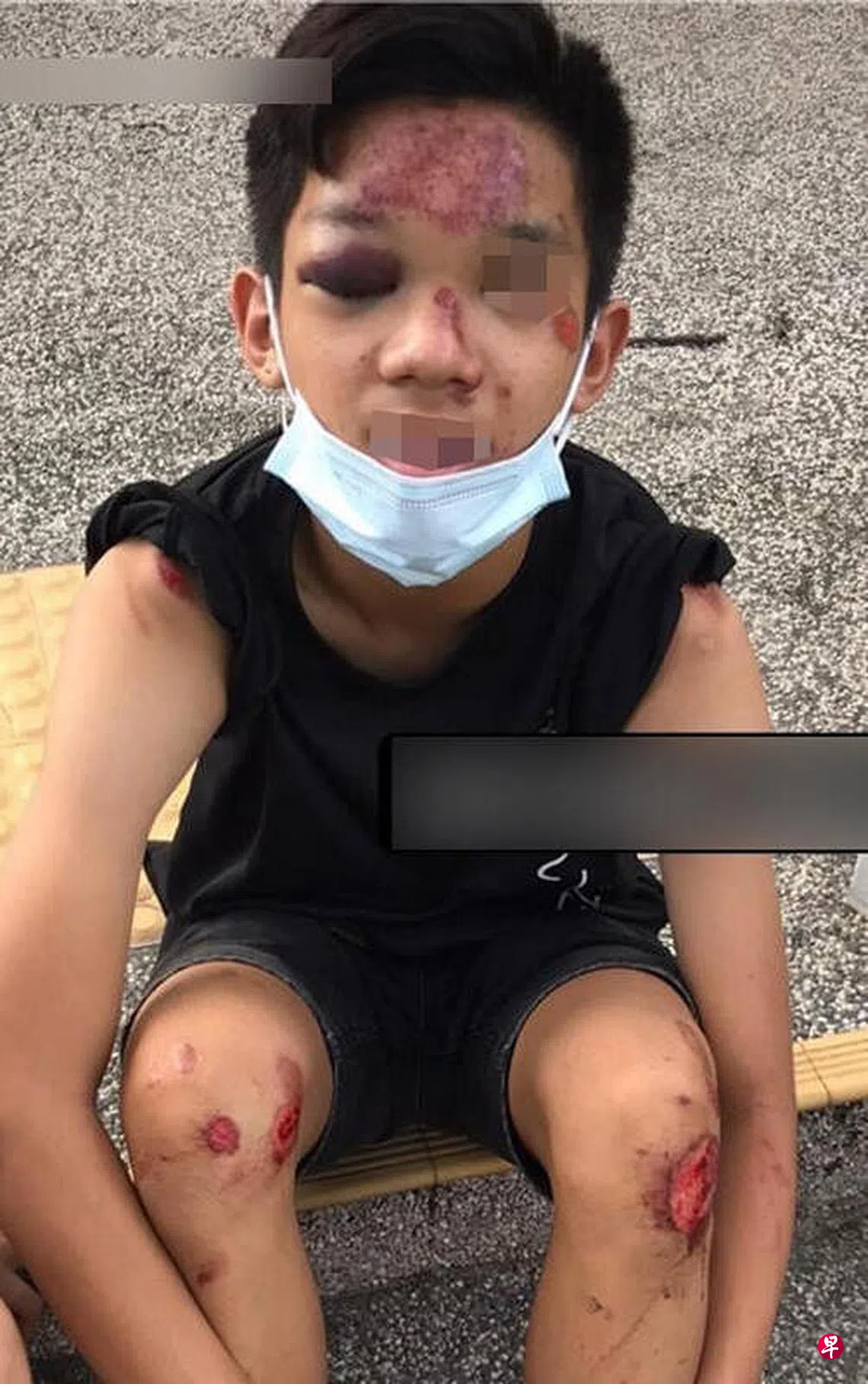 “朋友的额头擦伤,右眼严重淤青,手脚皆有擦伤。我们事后拍了他的照片,贴在社交媒体寻找目击者。”