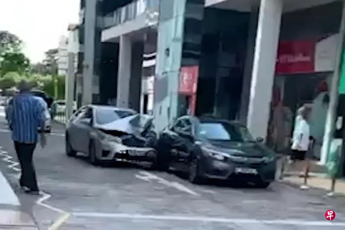 社交媒体面簿“Beh Chia Lor - Singapore Road”昨天上午上载一个22秒长的视频,内容是一辆车头损坏的银色汽车,往前开时不知何故撞到停在路旁的一辆黑色车子。