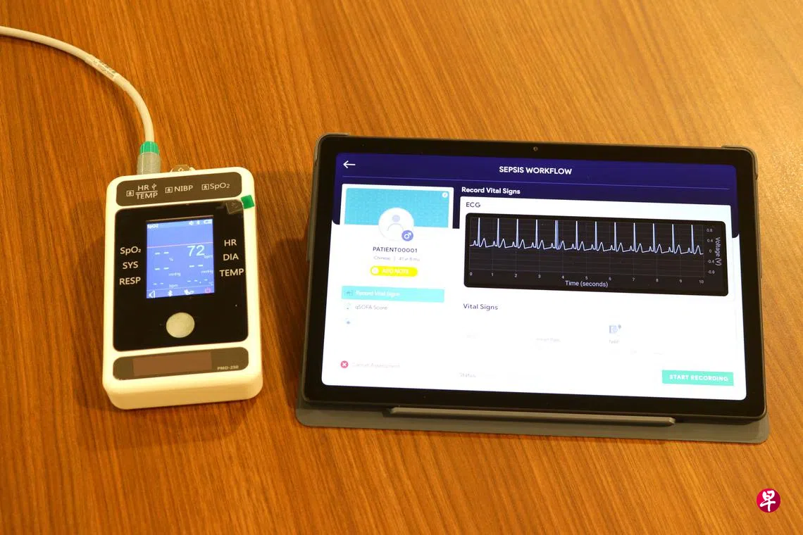 新模式预测败血症死亡风险 仅需五分钟准确度达九成订户赠阅文章新加坡中央医院与杜克—国大医学院今年5月推出犹如手机般大小的仪器(左)以测量心率,把心率变异数据用于平板电脑内的新预算模式,可预测病患的败血症死亡风险。(新加坡中央医院提供)王嬿婷 报道gladysyt@sph.com.sg新加坡中央医院与杜克—国大医学院以人工智能技术研发新预测仪器和模式,仅五分钟就能预测败血症死亡风险,准确度高达九成以上。人工智能新加坡中央医院败血症上一篇新加坡援人协会通过“诚心饼” 鼓励面对心理问题诚实对话下一篇李总理:恐怖主义威胁仍在 我国须密切留意盘踞阿富汗恐怖组织活动购买此文章
