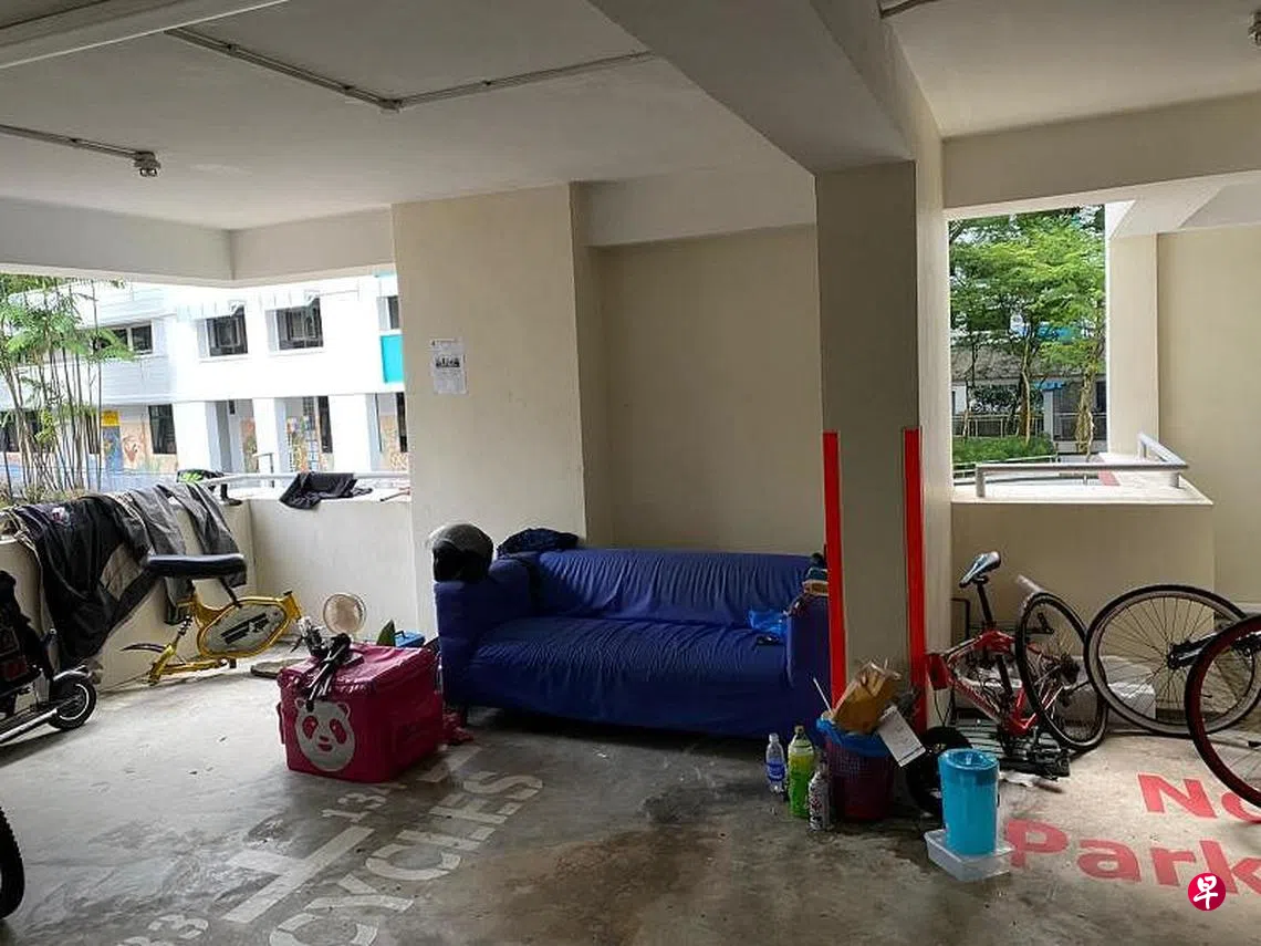 热心读者吴先生(40岁)拨打《新明日报》24小时新闻热线通报,指两周前发现在武吉班让环路(Bukit Panjang Ring Road)第541A座多层停车场4A楼层一角落处,有人放置了不少杂物,包括沙发与数辆脚车,还有送餐盒与衣物摆放在墙边。