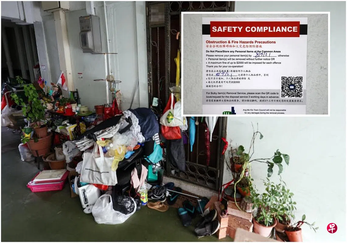住在组屋的老妇不分昼夜到处收集杂物,她把杂物塞满自己的住家后,再把杂物堆到走廊和楼梯口前;邻居表示这座组屋只有一个楼梯,万一堆积的杂物起火,他们可能连唯一的逃生之路也被切断,忧心忡忡。
