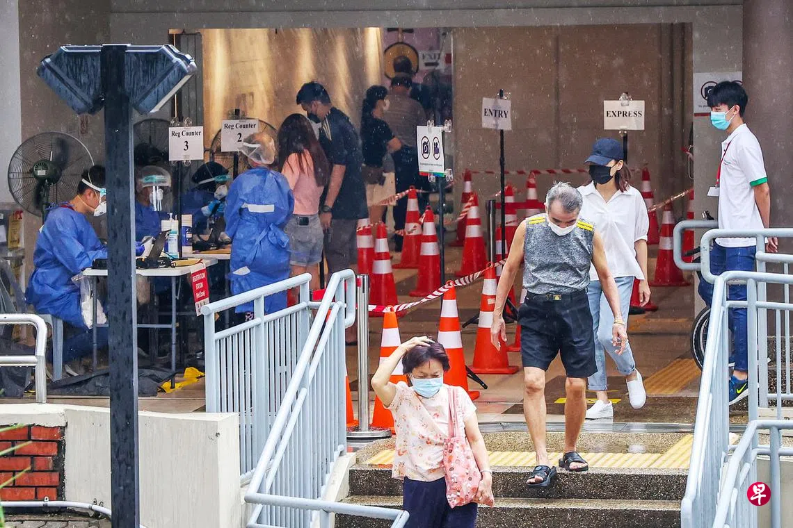 牛车水大厦工作人员昨天起陆续到设在牛车水民众俱乐部的临时检测中心接受冠病检测。