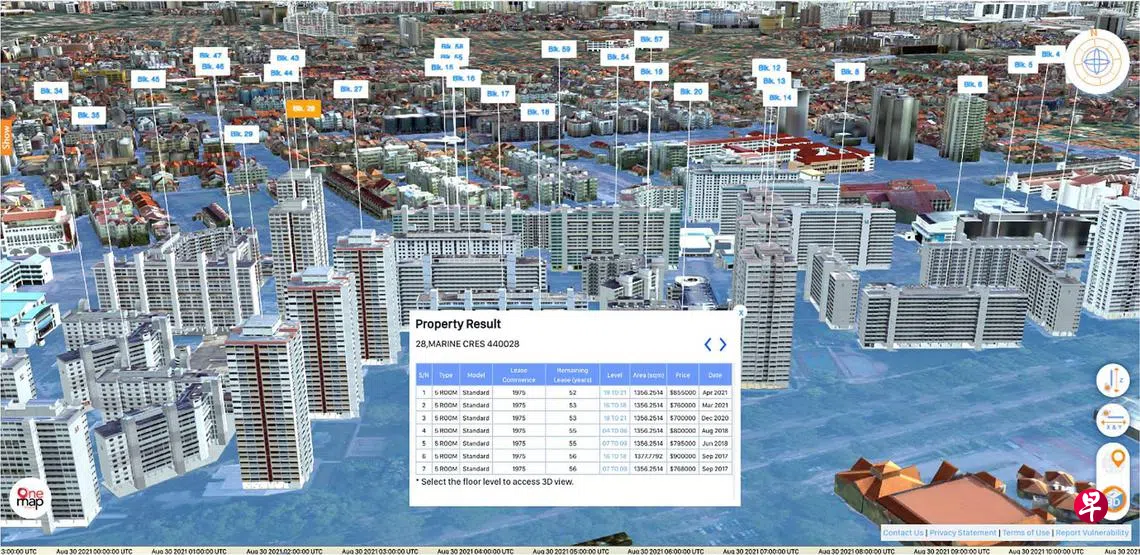 名为OneMap3D的沉浸式平台目前有八大功能,除了提供基本导航和巴士路线信息,也包括查看任何土地的所有状况是否为国有或私有,该地区的建筑类型和过去的成交价,以及建筑物内不同楼层的风景和每日各个时段的阳光变化。