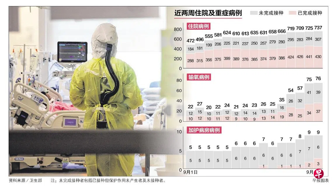 过去两周感染冠病后需要输氧的病例中,平均有一半已完成疫苗接种。专家指出,即使已完成接种,体弱多病的人还是有可能患上重症。
