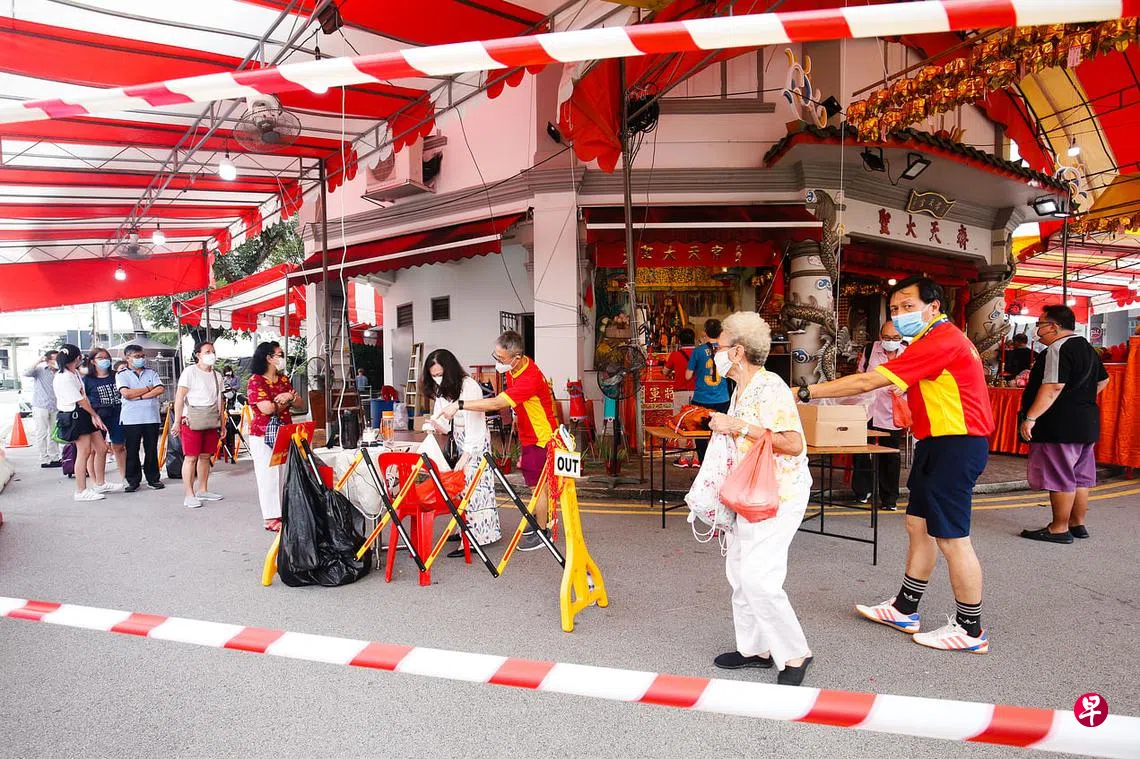 尽管近期本土冠病病例激增,有百年历史的中峇鲁齐天宫今年还是按传统惯例向警方申请封路,庆祝齐天大圣千秋宝诞,并规定只有完成冠病疫苗接种的信众才能入场。