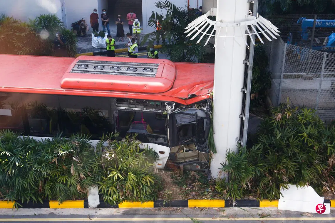 据《联合早报》了解,肇祸的是27号新捷运巴士,当时巴士上的乘客不多。行驶中的巴士不知何故突然失控,冲上路肩后撞倒一片灌木,再撞上高架轨道的柱子才停下。