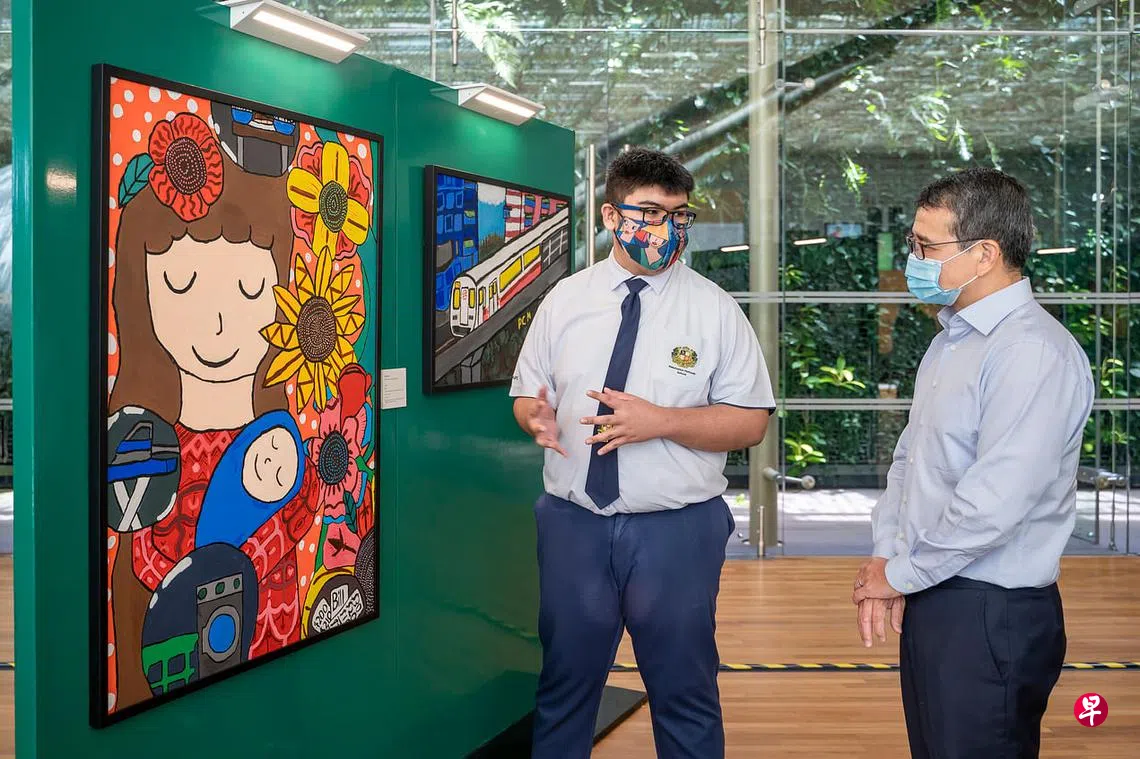 通过绘画建立自信 圣升明径学校男生用作画学习沟通订户赠阅文章圣升明径学校的四年级学生王杰伦(左)向文化、社区及青年部长兼律政部第二部长唐振辉介绍自己的画作《家》。(文化、社区及青年部提供)刘钰铃 报道lyuling@sph.com.sg从小不善于同他人交流,难以结交朋友,男生在加入圣升明径学校并接触视觉艺术后,开始建立与他人沟通信心,也希望公众从他的作品中聆听他的故事。新加坡国家美术馆上一篇大士厂房粉尘爆听证会 工程公司老板:已准备买新机器却发生意外下一篇首宗文件造假逃印花税案 夫妇与两房屋经纪被定罪购买此文章