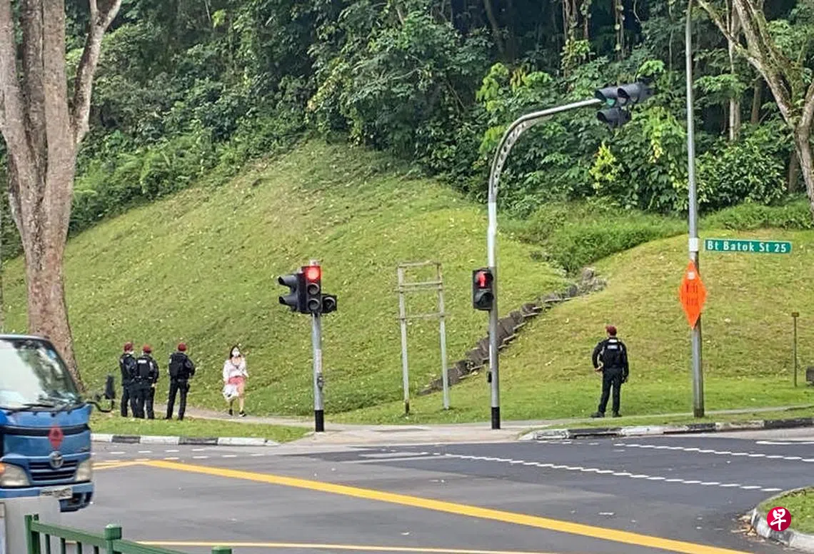 一直到今天早上,仍有多名警员驻守在武吉巴督25街一带,还有特别行动指挥处车辆及民防部队的车停在附近。