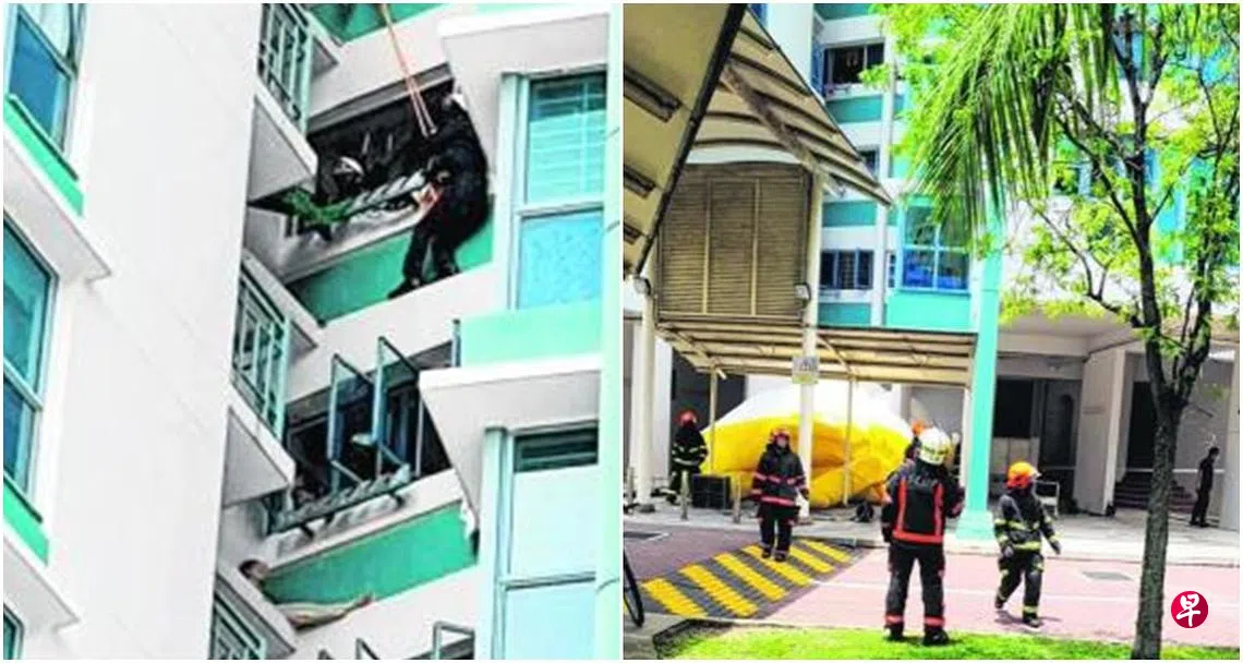 她说,当时在11楼和9楼单位的厨房,各有三名民防人员待命,他们在劝说女佣的同时也撒网救人。