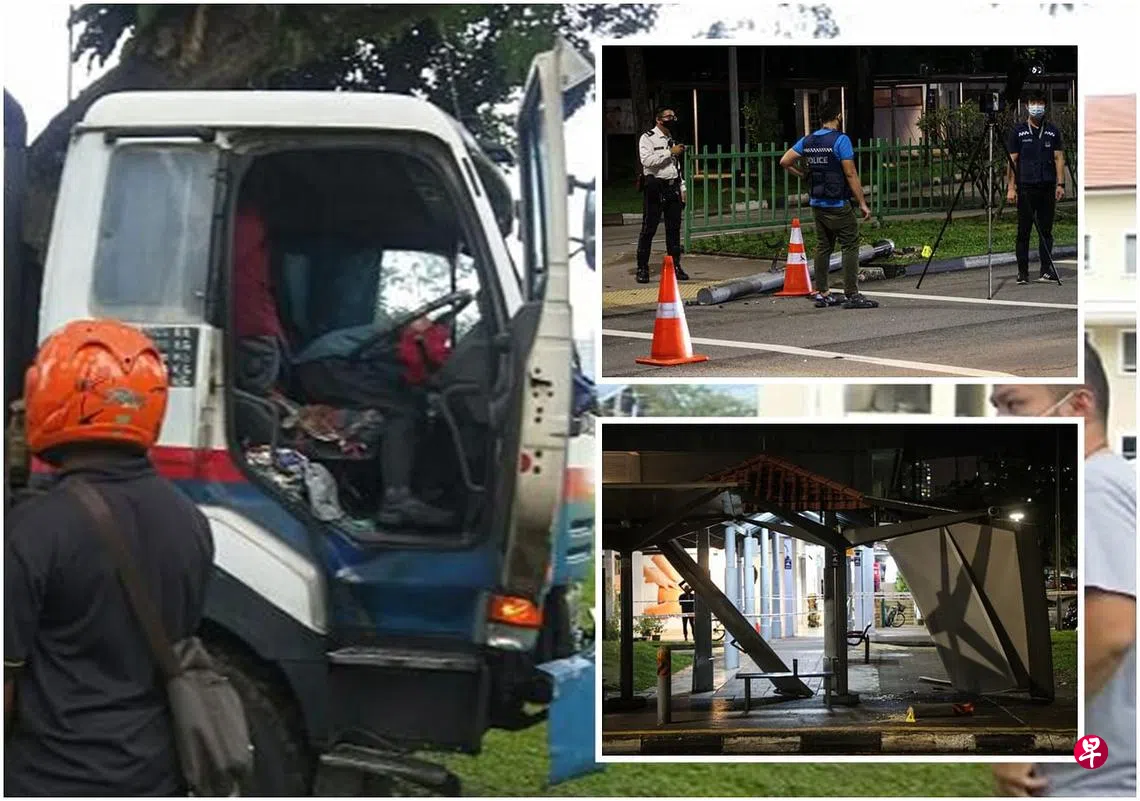 西海岸路惊险车祸,一名76岁的油槽车司机疑似开车时心脏病爆发,导致油槽车在路上失控蛇行了约200公尺,一路撞毁红绿灯,追尾两辆车,再撞断巴士站的水泥防撞柱、遮雨棚和告示牌后,才停在人行道上。