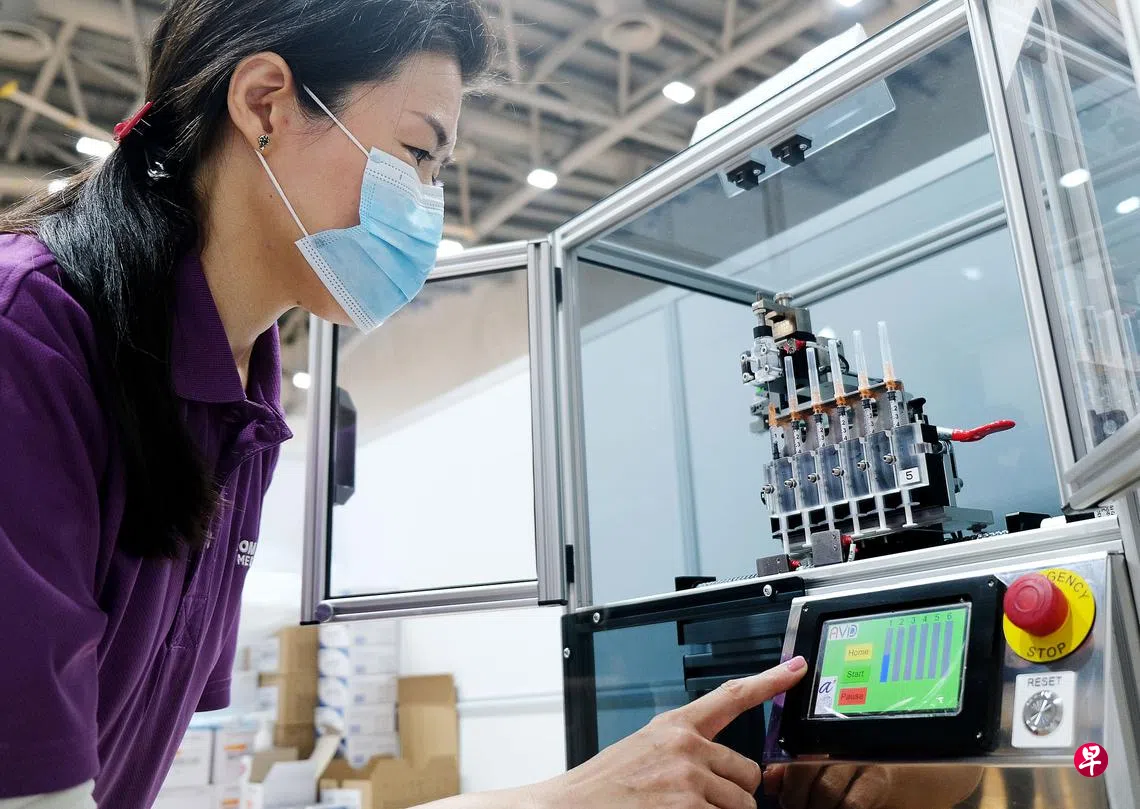 由新加坡科技研究局和本地企业Sysmatic Global携手研发的新机器,可自动从疫苗瓶中抽取疫苗注入针筒,除了减轻医护人员的工作量,也能提高接种中心的运作效率。