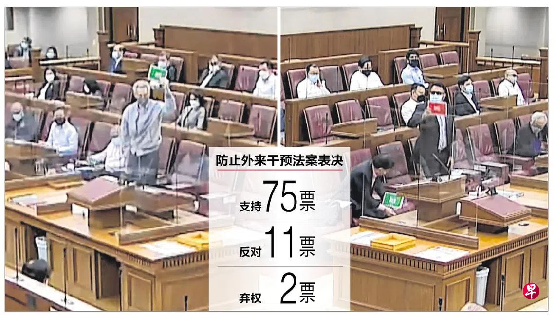 防止外来干预(对应措施)(Foreign Interference(Countermeasures))法案昨天经过约10个小时的辩论,在国会三读通过,授权内政部长发布指示,要求接获指示者协助调查和对付敌意信息宣传。由内政部长任命的主管当局也可将个人或组织列为“具政治影响力者”(Politically Significant Persons),要求他们披露与外国实体的关系等。