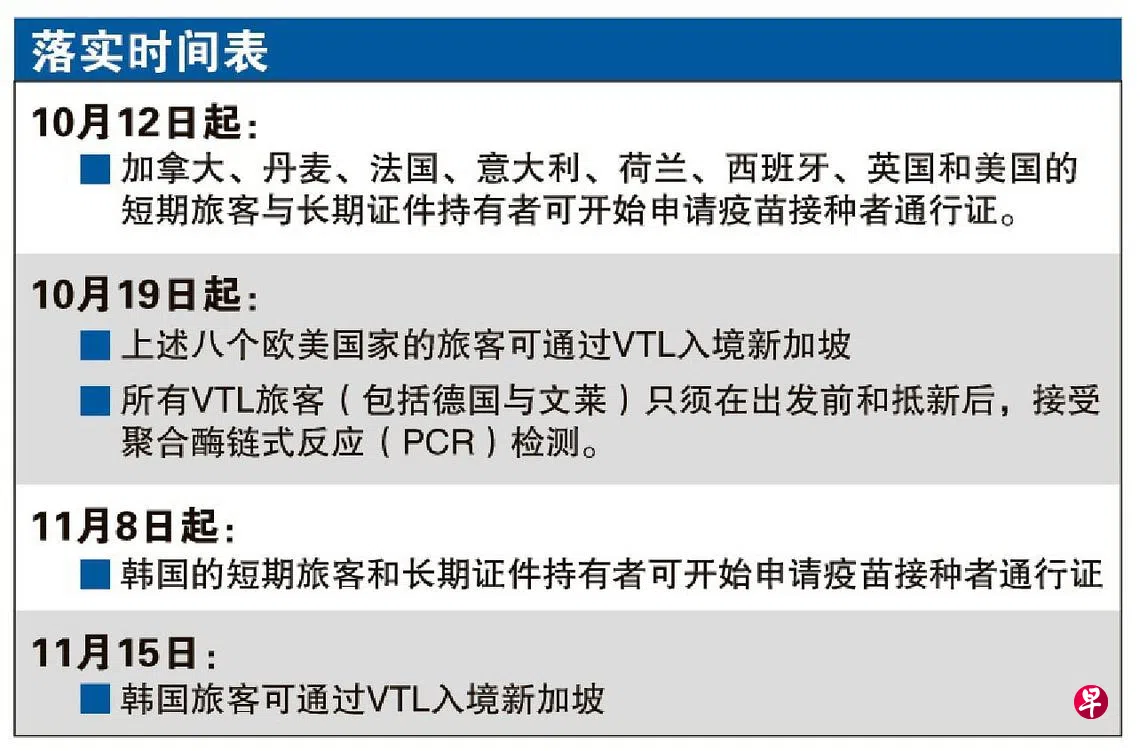 新加坡自9月8日起已开通德国和文莱疫苗接种者旅游走廊(简称VTL)计划。根据现有安排,不论来自德国或文莱的旅客,来新的前14天都不能到过新加坡以外的地方。