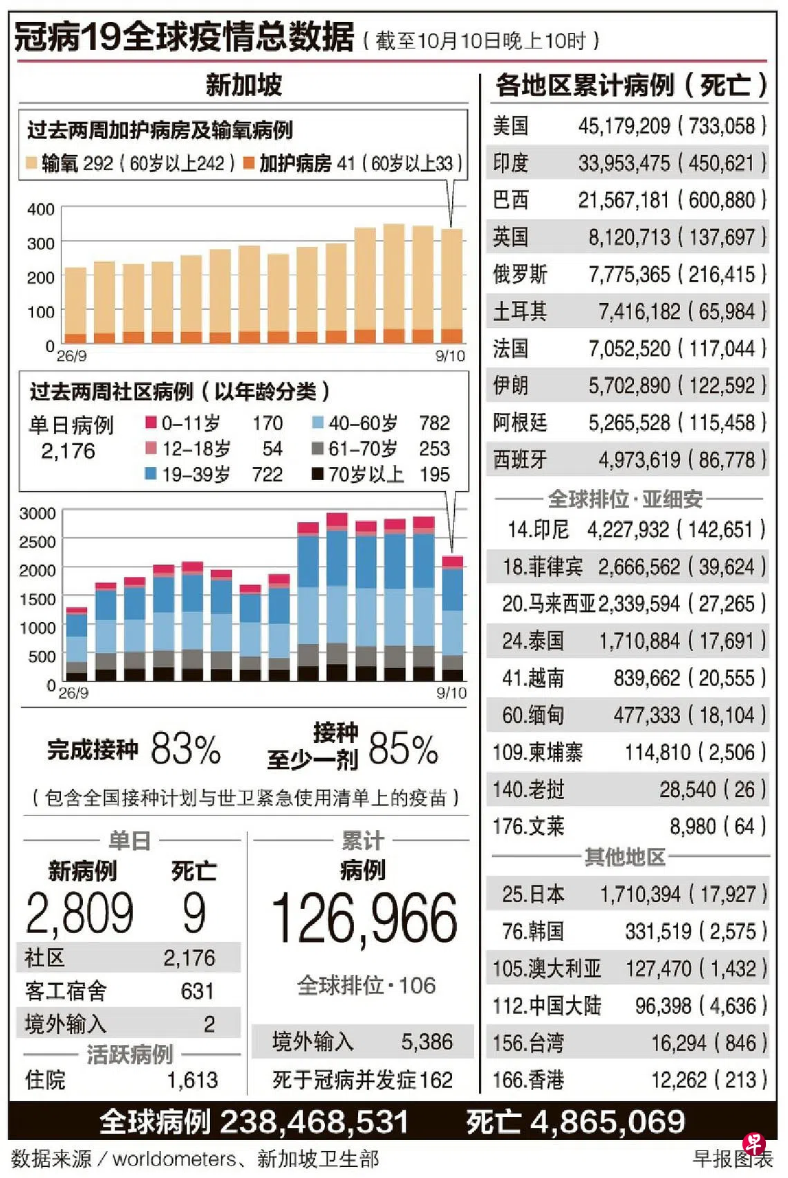 本地单日冠病病例在连续五天居高后回落到少于3000起的水平,昨天新增2809起病例。又有九名年长者因冠病并发症逝世,使本月首10天的累计死亡病例增至67起。