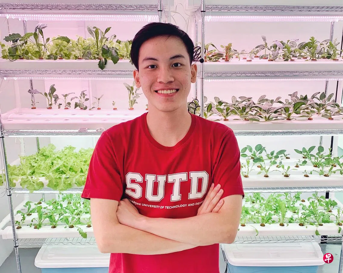 新加坡科技设计大学毕业生凭借对栽种植物的热忱,在毕业之前同朋友开设室内水耕农场,希望有朝一日能打造出可以让每个国人在家种植蔬菜的种植系统。