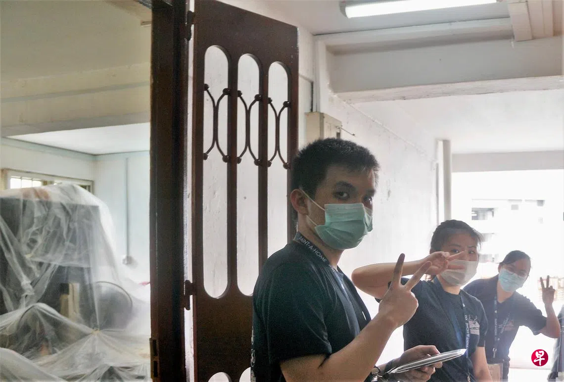 多名义工在疫情期间为租赁组屋单位漆上一层新色彩,让住在这狭小空间的贫困家庭和年长者,有个更舒适的生活环境。
