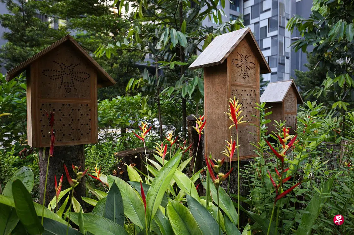 为小蜜蜂建“酒店”、为小鸟筑巢,负责女皇镇杜生区SkyParc@Dawson预购组屋项目设计的团队,在区内设置蜜蜂、鸟儿等生殖的木箱。这些小巧思在丰富生态多样性的同时,又能寓教于乐。