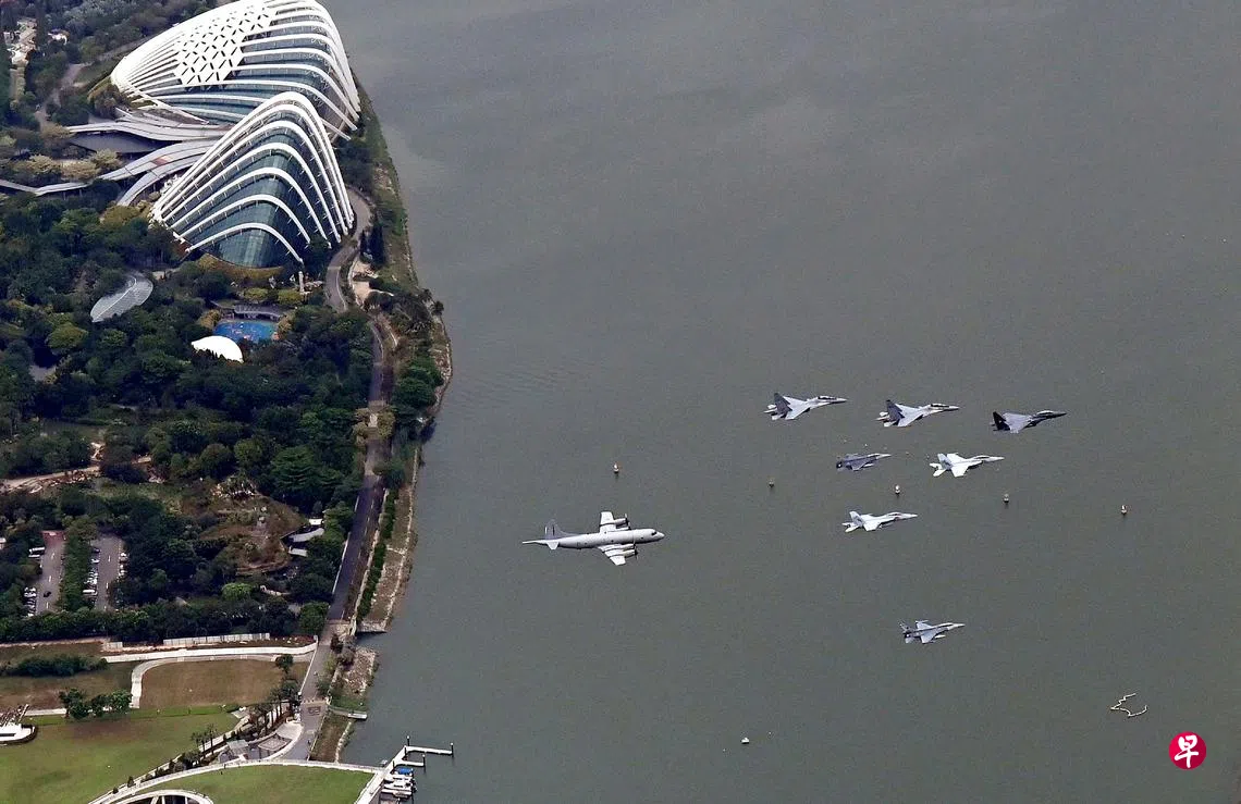 约10分钟的空中汇演除了新加坡空军部队的三角队形,还有由新加坡、马来西亚、澳大利亚和新西兰战斗机、海上侦察机及直升机组成的空中巡礼,以及由六架新加坡空军部队F-16和F-15SG战斗机呈献的“星花绽放”队形。