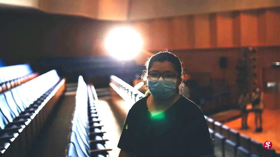 大学的一场客座讲座激发了庄诗敏对灯光技术的向往。虽然这个职业须耗费不少体力,但每每看到参与设置的灯光为作品所营造的氛围,她便如同打了一针强心剂。