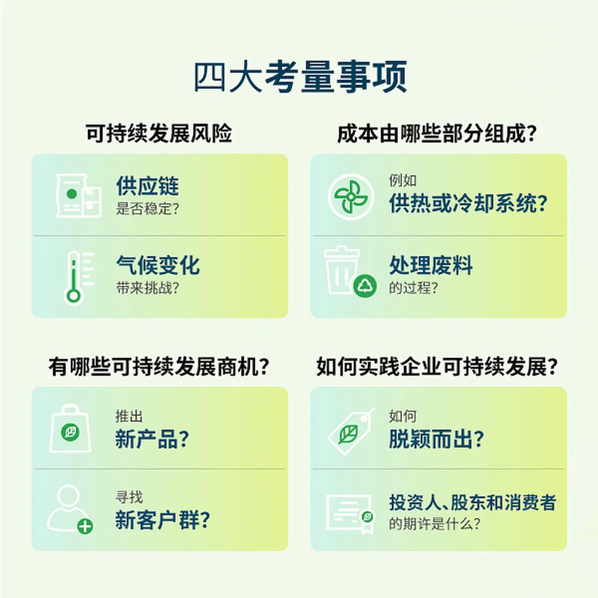 想要抓紧可持续发展商机的企业要从何下手?黃丽连提出以下四大步骤,从了解生意面对的环境风险和成本结构,到开拓绿色商机和提升品牌,帮助企业踏出第一步。