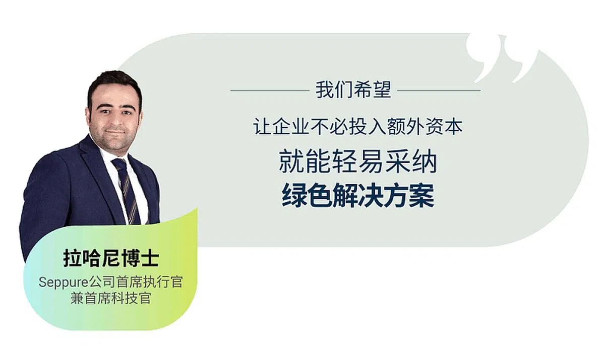Seppure公司首席执行官兼首席科技官拉哈尼博士(Mohammad H.D.A Farahani)说:“我们希望降低门槛,让企业不必投入额外资本,就能轻易采纳绿色解决方案。