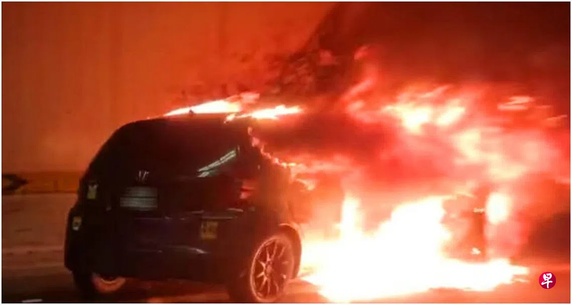 民防部队受询时说,当局接获救助电话,指一辆车子在隧道内起火燃烧。消防员抵达现场后用一个泡沫喷枪将火势扑灭。