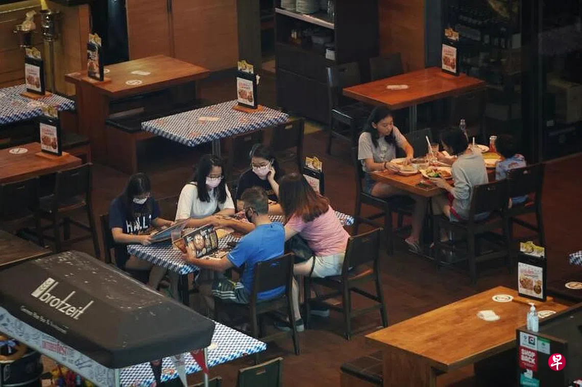 从明天起,政府将允许同户最多五名完成接种者一起上餐馆用餐。完成接种但不同住的食客仍须遵守两人堂食的限制。餐饮业者须检查食客接种状况及是否同住。