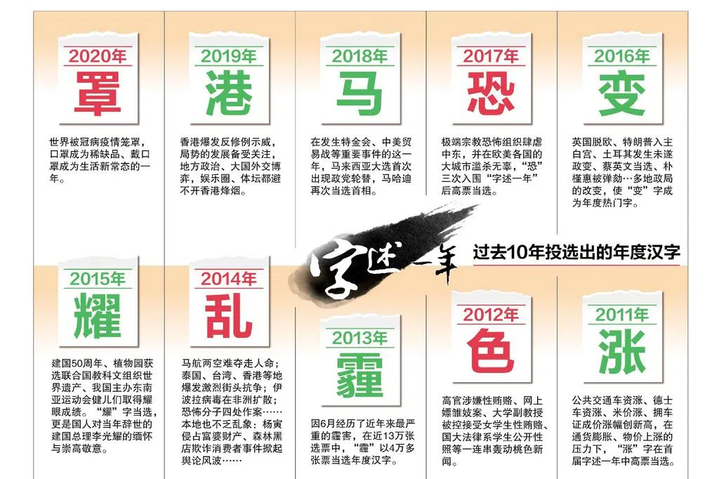 《联合早报》自2011年开始举办“字述一年”评选活动,每年都为人们评选出引发共鸣的年度汉字,见证每年的国际大事、社会热点和民生民情。