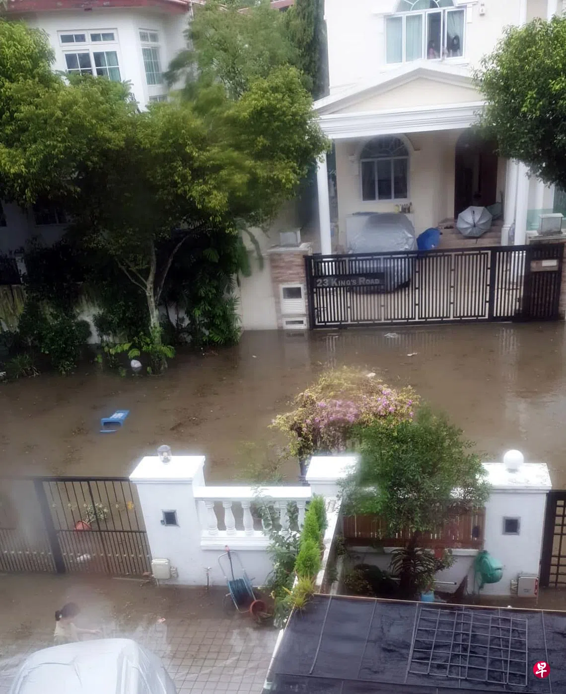武吉知马一带的京士路前天发生严重突发性淹水情况,水位约达半米高,排屋区长达50米的路段被淹没。公共事业局经调查发现,该区在当天早上刚进行剪草工作,路边排水口被草屑堵塞,雨水不能流入排水系统,导致淹水。