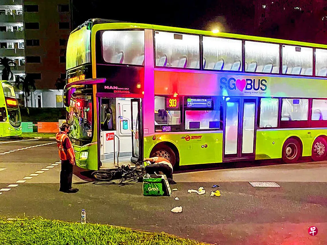 马西岭前晚发生车祸,双层巴士转弯时不知何故撞上驶过交通灯行人过道的脚踏车,43岁送餐员骑士被撞飞,随后送院治疗。涉事的SMRT巴士车长已被停职。
