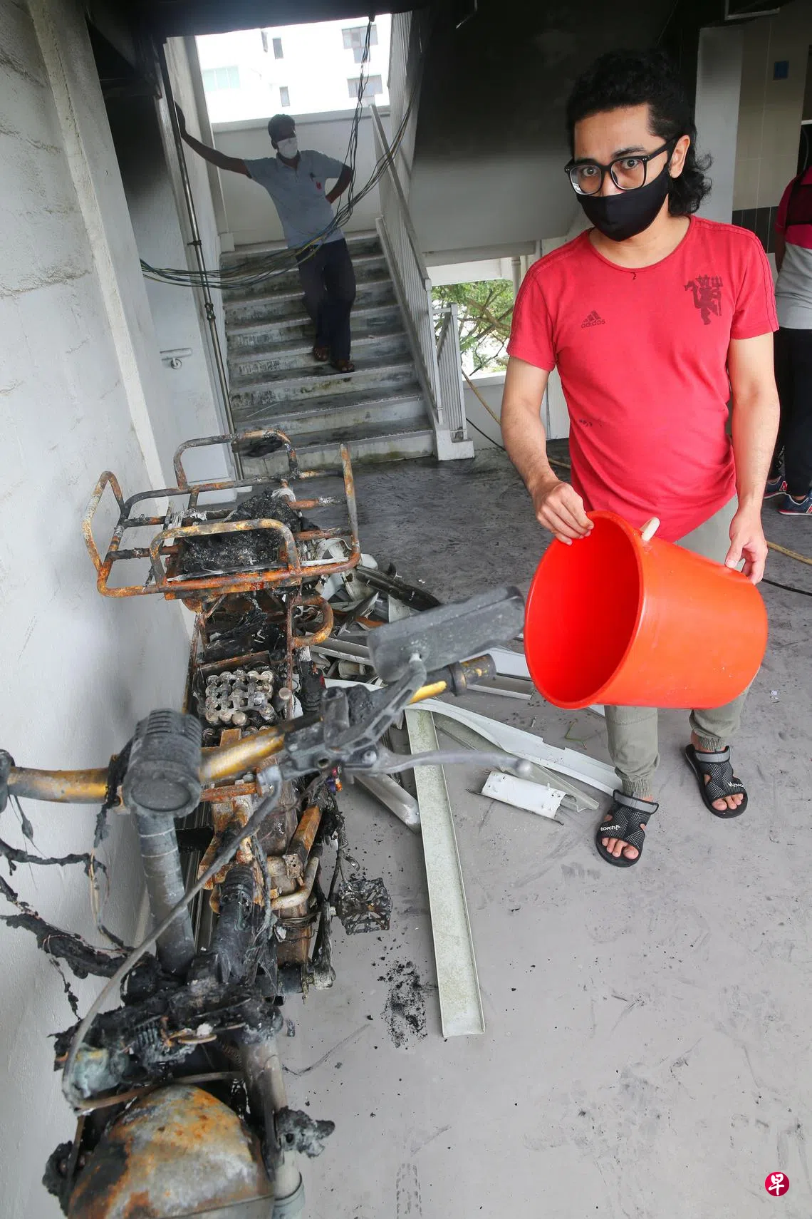 初步调查显示,失火原因来自电动脚踏车的电源,有公众在民防部队抵达前试图用水桶和灭火器将火势扑灭,民防部队将联系这些公众进行表彰。