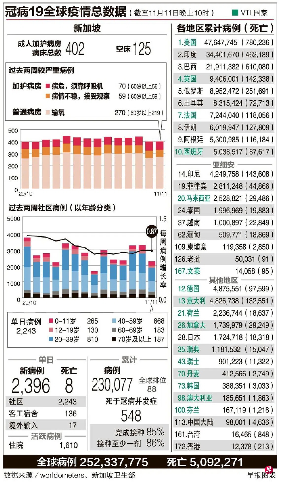 新增病例比前天少了1085起,当中2243起是社区病例,136起来自客工宿舍,17起从境外输入。