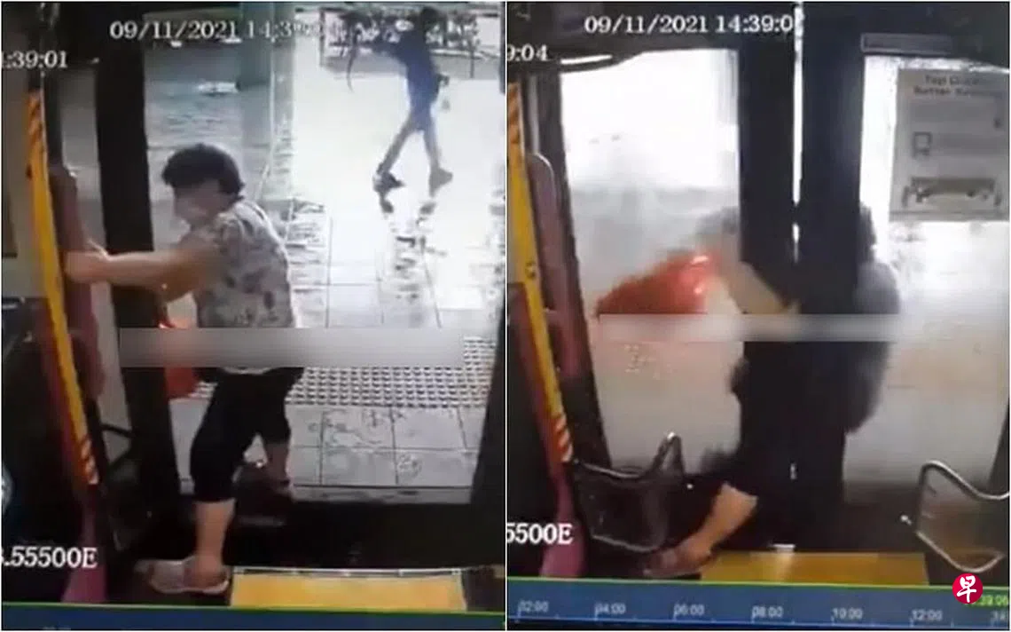 根据《新明日报》报道,这起事故于本月9日下午2时许发生,地点是后港转换站。事发视频从昨日开始于多个社交媒体上疯传。根据这段时长1分07秒的视频,当时年约六七旬的阿婆正缓慢地准备从巴士后门下车。