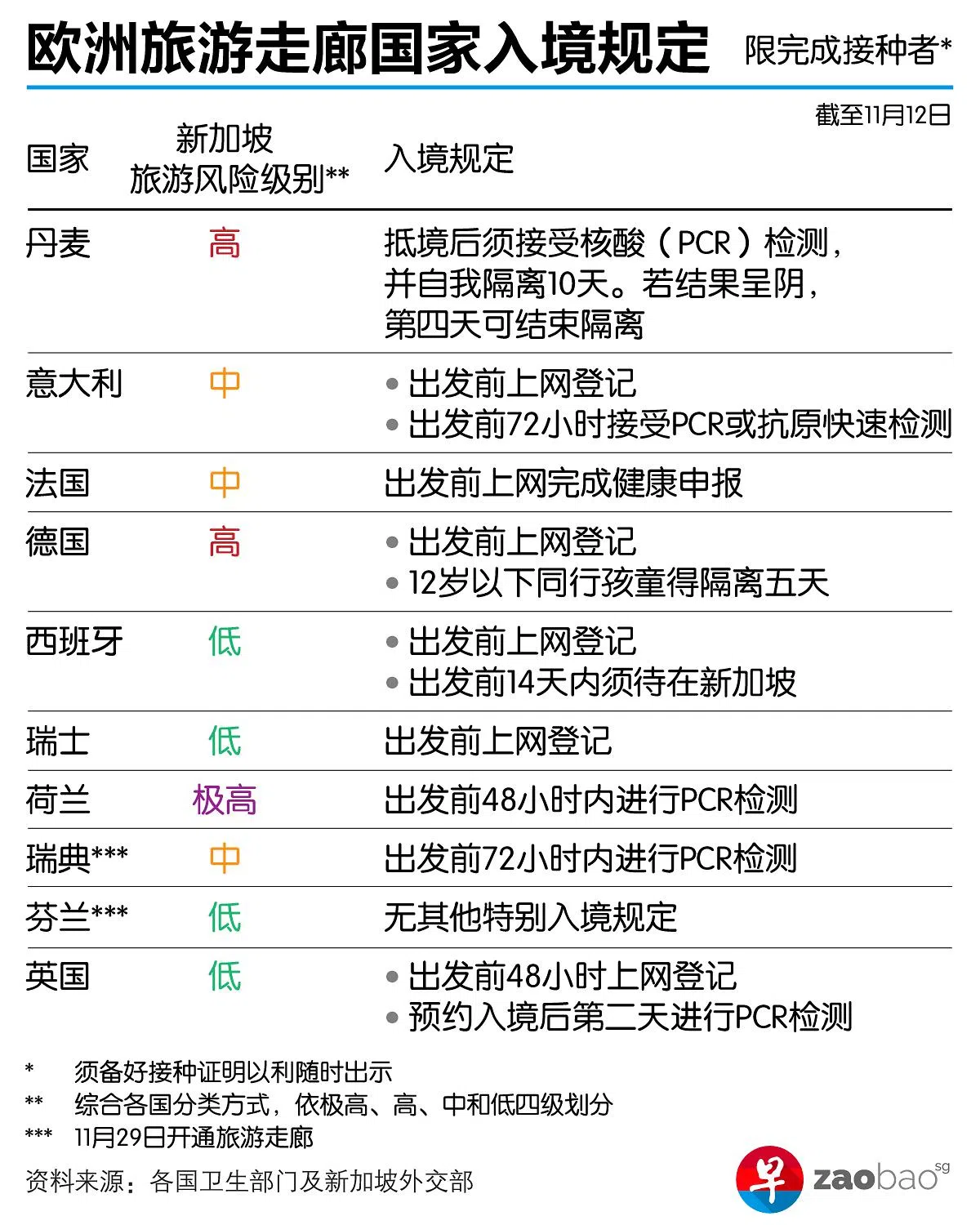 目前,国人入境被纳入接种者旅游走廊(Vaccinated Travel Lane,简称VTL)计划的欧洲国家时需做哪些准备?这些国家又如何评估新加坡的旅游风险级别?