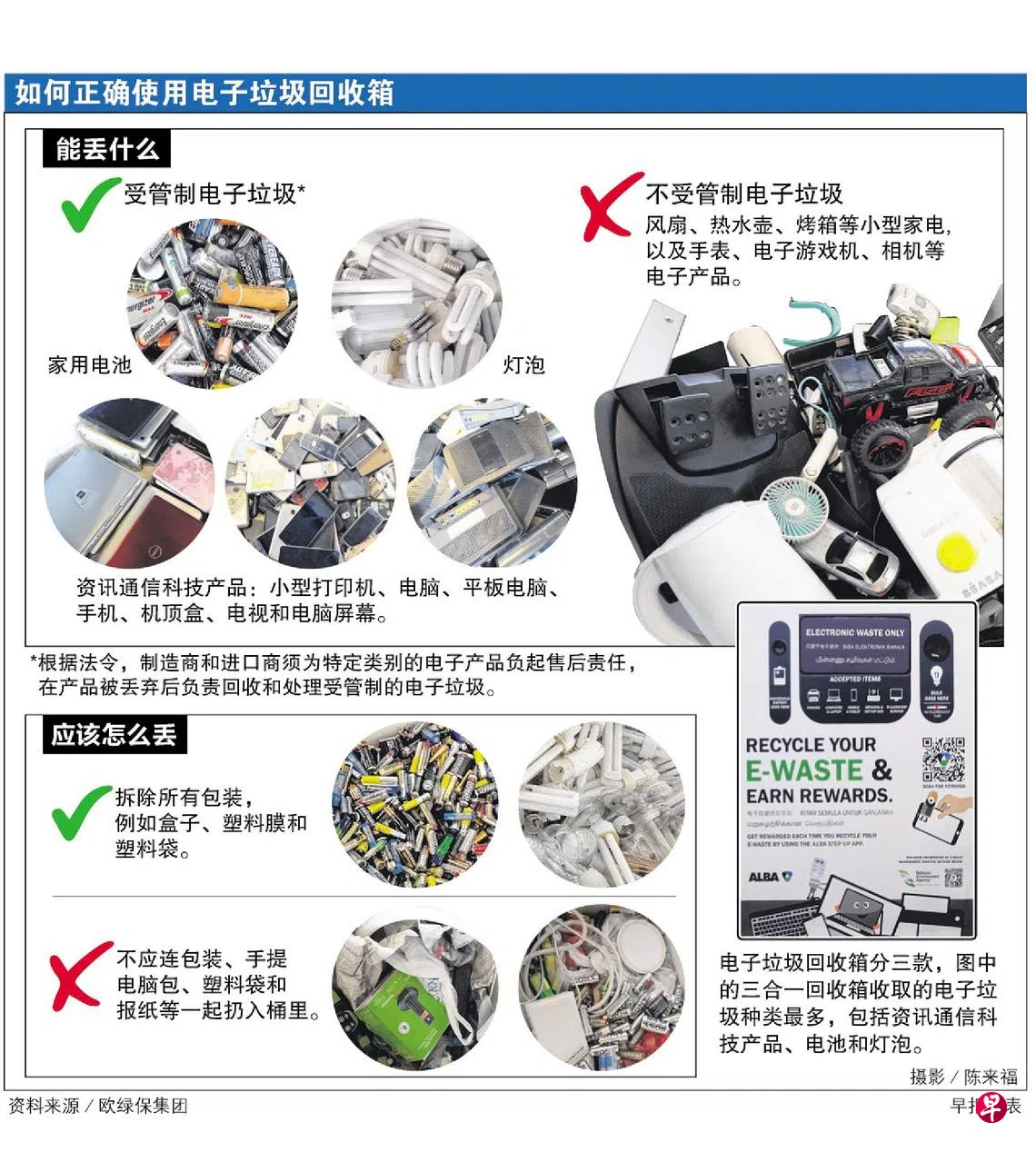 截至本月1日,全岛设有464个电子垃圾回收箱,到了月底还会进一步增至超过500个,设置处涵盖购物中心、超市、电器行、民众俱乐部、大专学府等。数据显示,今年7月至10月,回收箱收到的物品中,约三成不属于受管制的电子垃圾。
